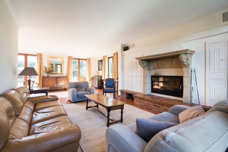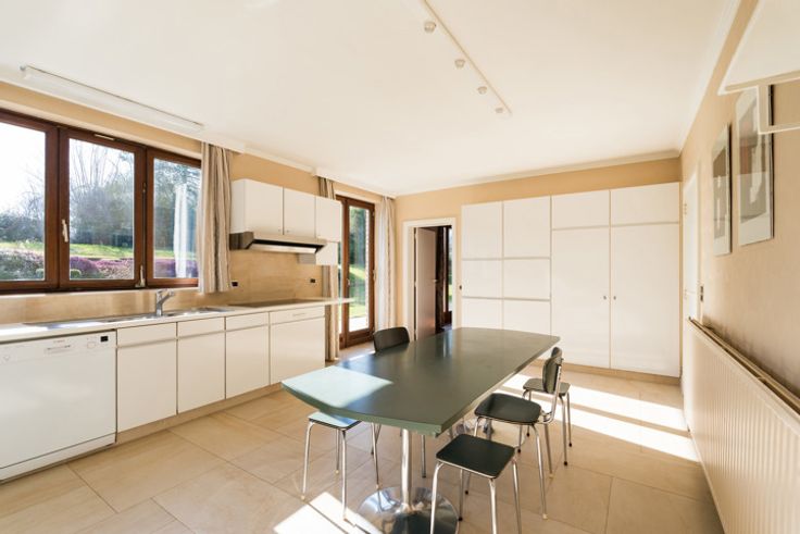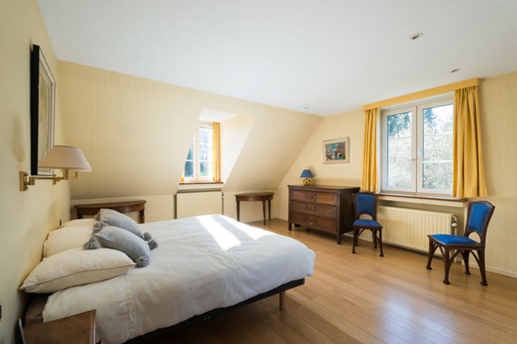 Lasne Plancenoit, Prachtige klassieke villa (6bed/2bath/2office) gebouwd in 1974 en vol charme, genesteld in een idyllische omgeving ideaal voor liefhebbers van rust en groen. Op het zuiden gelegen perceel van 13ca met prachtig uitzicht. Ruime villa van hoge kwaliteit. Begane grond: Inkomhal met toilet, vestiaire, wijnkelder, eikenhouten trap, bureau, ruime ontvangstruimten waaronder een grote woonkamer met open haard (+bad) en eetkamer, allen uitgevend op een prachtige tuin en aangenaam terras, ruime keuken met ontbijthoek, bijkeuken en berging, ruime dubbele garage met stookruimte, atelier, berging, toegang tot de tuin. 1e verdieping: nachthal overloop, 1e grote ouderslaapkamer (semi-massieve eiken vloer) met inbouwkasten en aangrenzende badkamer (bad + ingebouwde douche, dubbele wastafel, tegelvloer, toilet, spots), berging met elektrische boiler, 2e badkamer (bad + ingebouwde douche, dubbele wastafel, tegelvloer, spots en ventilatie), apart toilet, drie slaapkamers met inbouwkasten en wastafel, 5e en 6e slaapkamer op rij met toegang naar buiten via trap. 2e verdieping: grote zolder voor opslag. Buiten: grote aangelegde parkeerplaats, groot terras op het zuiden, mooie glooiende tuin met prachtig vrij uitzicht, beplanting, berging. Technische kenmerken; Gebouwd in 1974, verwarmingsketel op olie (1994) - ondergrondse tank van 5000 liter, houten ramen met dubbele beglazing (1974) op de begane grond en ramen met driedubbele beglazing op de 1e verdieping (2010), elektriciteitsm