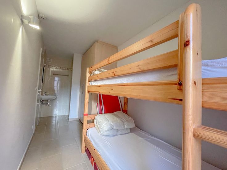 De indeling bevat verder een apart toilet en een badkamer. De 1ste slaapkamer heeft een dubbel bed. De tweede is voorzien van een stapelbed en douchekamer. Beide slaapkamers hebben een ruime garderobekast.