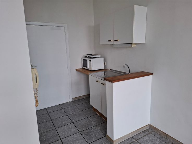 Studio très lumineux entièrement carrelé , coin cuisine : frigo, taque électrique, micro onde .salle de bain ,wc. Chauffage centrale, double vitrage , prise proximus et voo. Loyer 580 € charges comprise , caution 2 mois, bail 1 an .Proche média citée, arrêt de bus. Téléphone 0475/519989