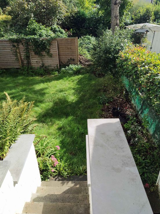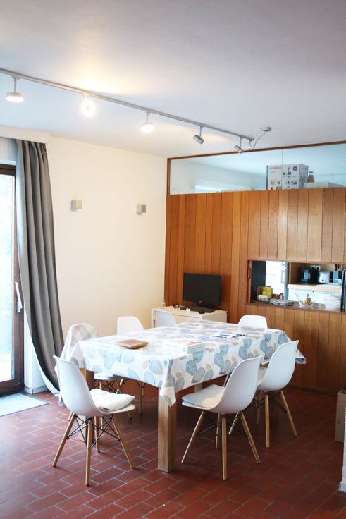 - rez arrière : séjour et cuisine équipée, accès à la terrasse et au jardin