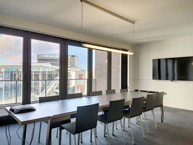 Dit ruime en instapklare kantoor, gelegen op de eerste verdieping, biedt een aangename en professionele werkomgeving met een prachtig uitzicht over de Leopoldplaats. Dankzij de twee toegangen, via Tabaksvest 91A en Bourlastraat 3, is het pand gemakkelijk bereikbaar. De kantoorruimte bestaat uit drie royale werkruimtes, die elk zijn ingericht met een vergadertafel en flexibel kunnen worden aangepast aan verschillende werkopstellingen. Centraal in het kantoor bevindt zich een bureauruimte voor een assistent, ideaal voor een efficiënte ondersteuning van het team.