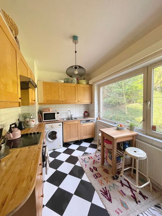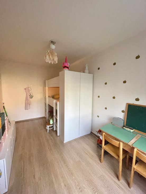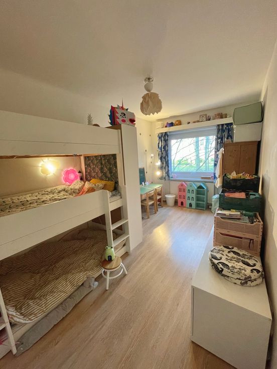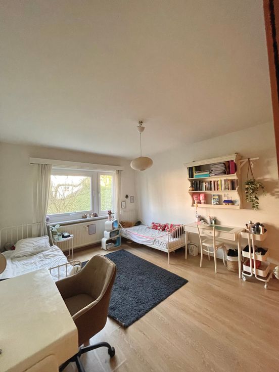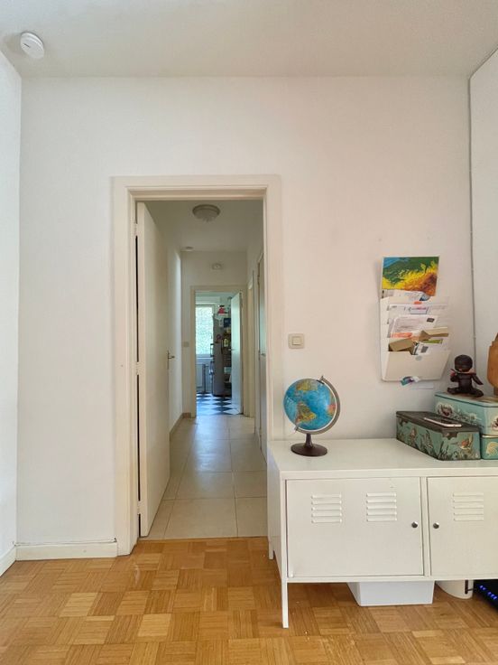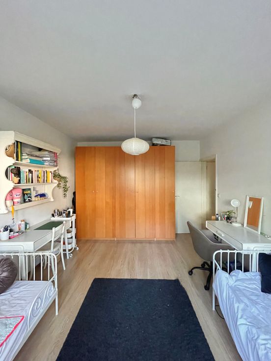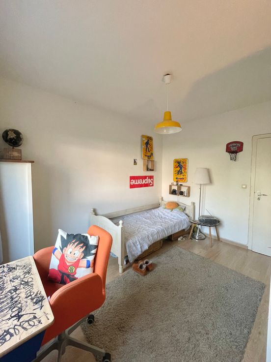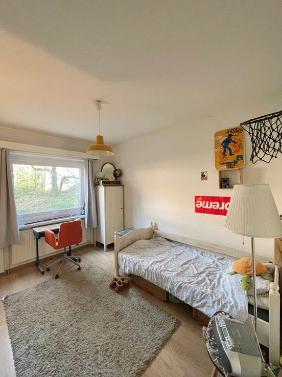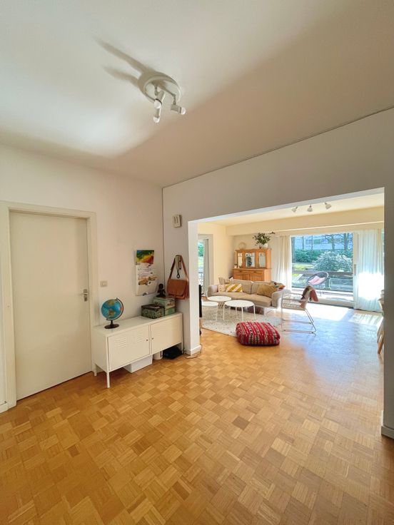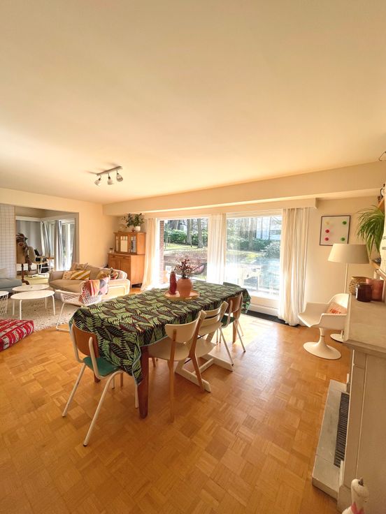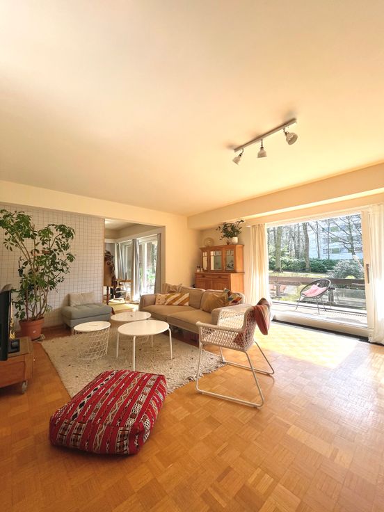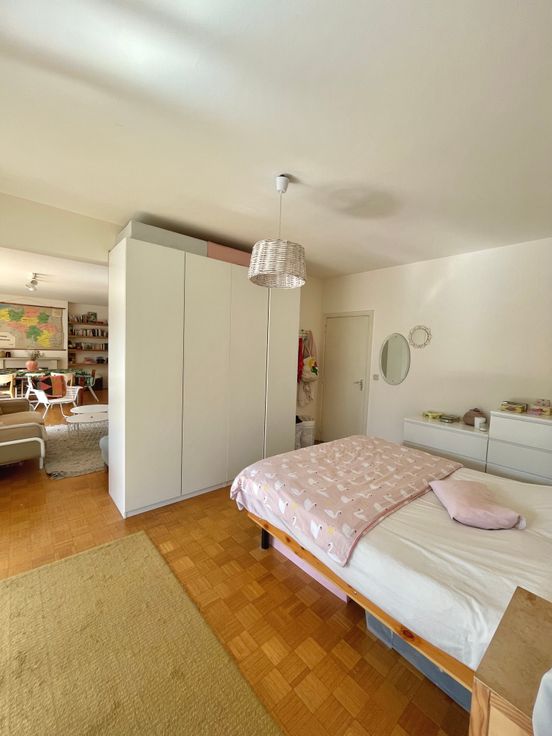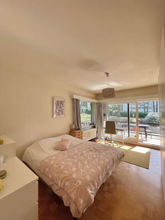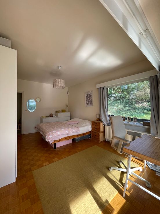 3 chambres, de respectivement ± 14m², ± 15m² et ± 25m², 1 chambre supplémentaire possible de ±20m2, salle de bain et salle de douche. Parquets, immeuble très bien entretenu dans un parc très agréable communs de standing, cave, grand garage fermé.