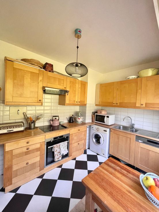 Salon, salle à manger, cuisine équipée, buanderie, nombreux rangements.