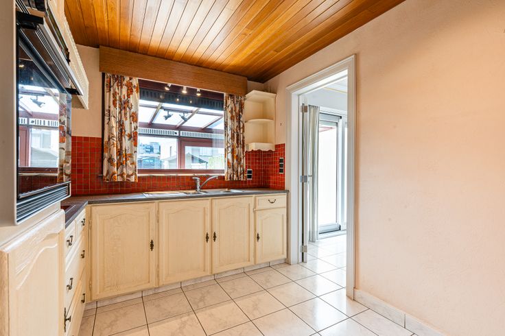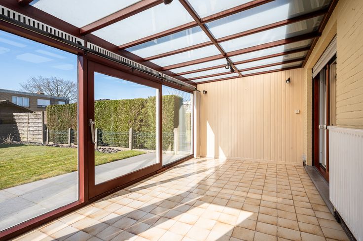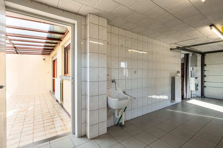 Op het gelijkvloers kom je via de inkomhal, voorzien van apart toilet, rechtstreeks in een lichtrijke living. Aansluitend bevindt zich de keuken die uitkijkt op de veranda en de goed onderhouden tuin, deze beschikt over een gezellig terras en 2 tuinhuizen. Vervolgens, is er nog een ruime garage met gemotoriseerde sectionaalpoort terug te vinden op deze gelijkvloerse verdieping.