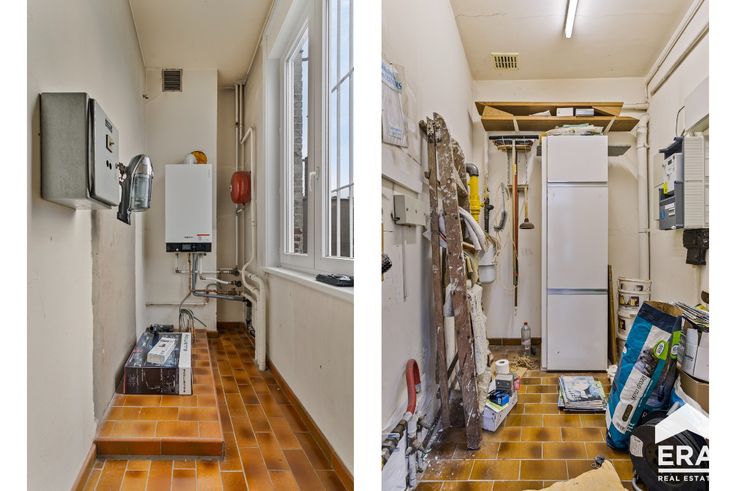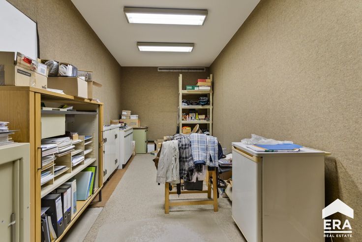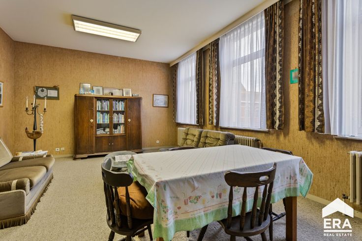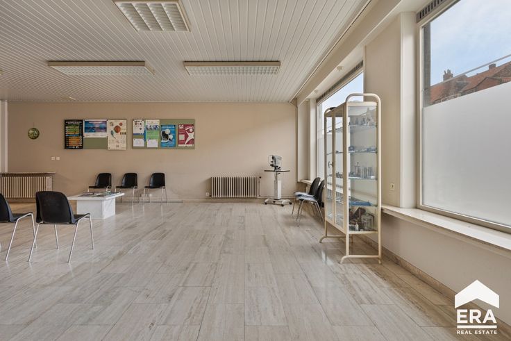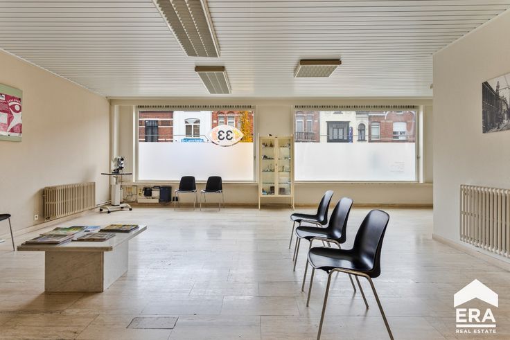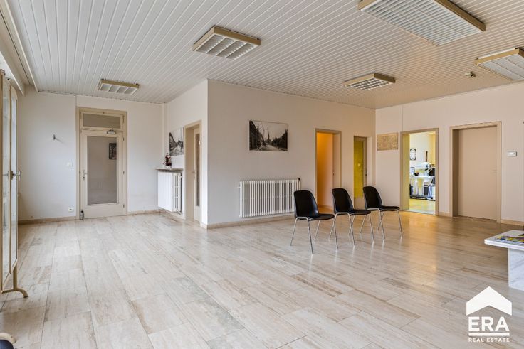 Indeling: Op het gelijkvloers komen we binnen via de inkomhal met afzonderlijke berging.Verder vinden we een grote handelsruimte met twee afzonderlijke burelen. Daarnaast vinden we een hal met toegang tot de kluizenkamer en een afzonderlijk toilet. Via de traphal gaan we naar de eerste verdieping waar er een keuken, woonkamer (/ vergaderzaal), eerste slaapkamer (/ afzonderlijk bureel), een toilet en een berging voorzien is. Via de vaste trap kunnen we naar de zolderverdieping, waar er de mogelijkheid is om eventueel twee slaapkamers plaats te geven. Buiten vinden we een magnifieke, zuid-gerichte tuin terug met een buitenberging.