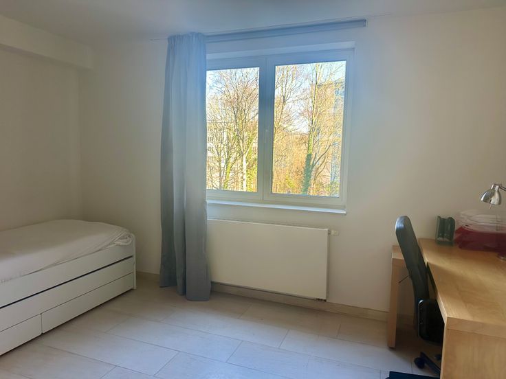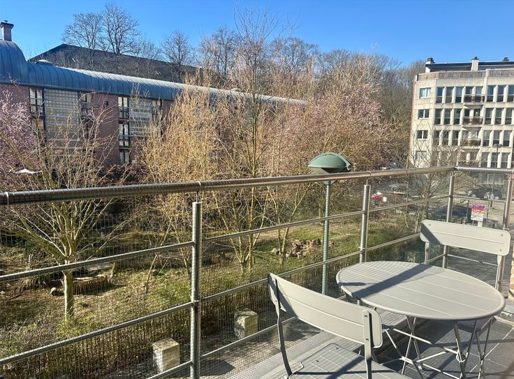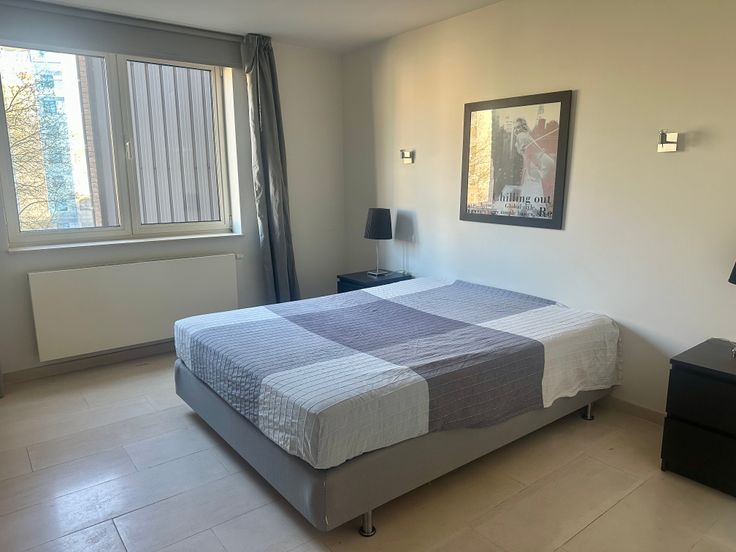Dans un petit immeuble situé le long de la promenade verte, proximité immédiate du tram 8 et de Hermann Debroux, appartement meublé de 100m² au 2e étage avec ascenseur, composé de 2 chambres (14-16m²), 2 salles d’eau dont une avec bain, cuisine super équipée, terrasse orientée sud-ouest 6m², double vitrage, porte blindée, vidéophone. PEB C+. Agences s'abstenir.