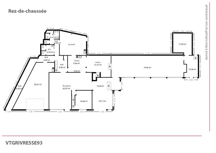 Op het gelijkvloers : taverne met bar en onthaalruimte (56 m²), ruime en lichte receptiezaal (75 m²), salon met open haard, keuken en bijkeuken, toiletten M/V, garage met sectionale poort (57 m²), bergruimte, directiekantoor, wijnkelder.