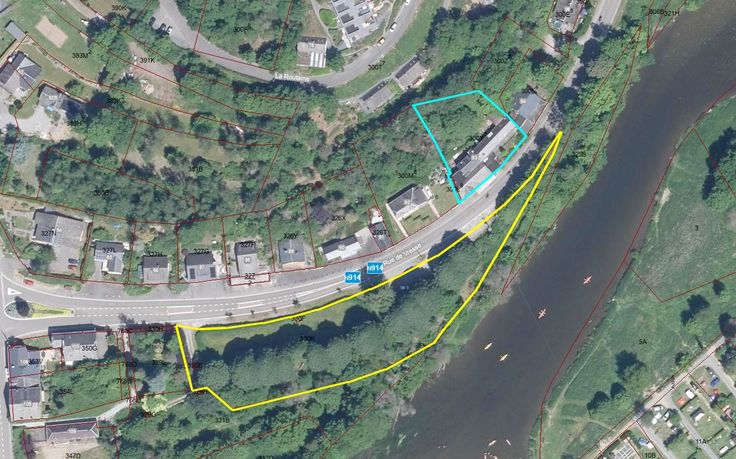 Op de eerste verdieping : 11 kamers, 9 badkamers, bergruimte, linnenkamer, wasserij. Op de tweede verdeiping : 7 kamers, 7 badkamers, zolder, sorteerruimte. Tegenover het hotel : terrein van 50 are (in geel op de luchtfoto / groene zone volgens het gewestplan) genietend van een uitzonderlijke ligging met zicht op de Semois.