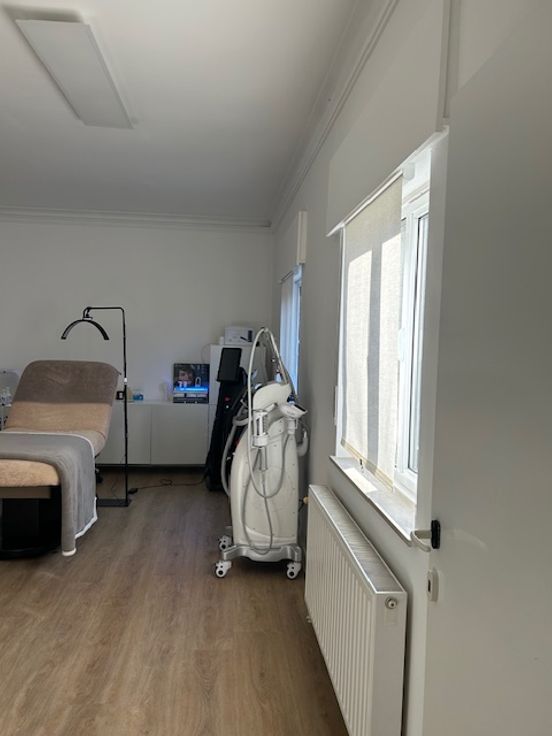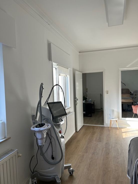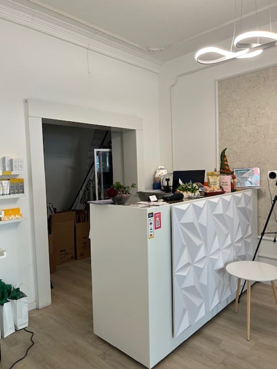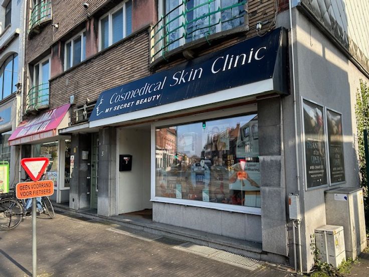 Winkelruimte 40 m2, WC 1 m2, keuken 12 m2, polyvalente ruimte 17m2 ( momenteel gebruikt als massage-, behandelingruimte) kelder met grote bergruimte en tuin 14 m2.
