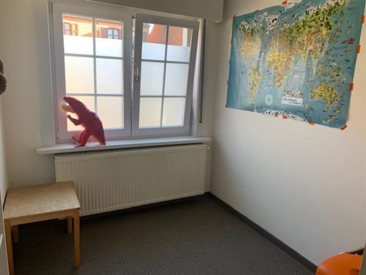 Mol Ginderbuiten: gelijkvloers appartement met 2 slpks (waarvan 1 voorzien van aanpalende dressing), woonkamer, bureau, keuken, berging, badkamer, tuin en carport.