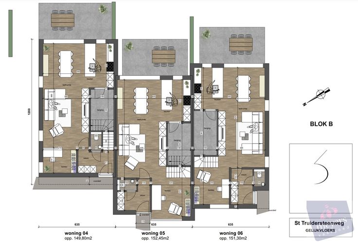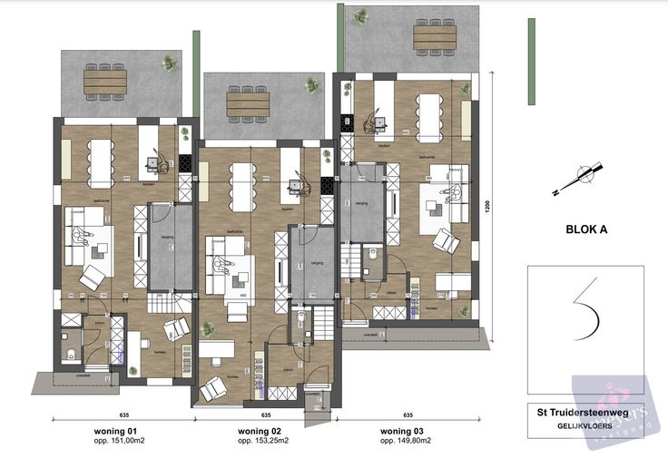 Elke woning heeft een bewoonbare oppervlakte van circa 150 m² en is ontworpen met een functionele en moderne indeling: