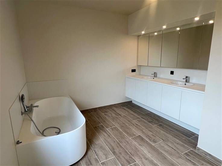 Ontdek deze prachtige, ruime nieuwbouwwoning in een rustige, doodlopende straat nabij de dorpskern van Nukerke, met vlotte verbinding naar de N60. De woning biedt een lichtrijke living met volledig ingerichte open keuken, een garage en inkomhal met afzonderlijke wc. Op de eerste verdieping vindt u drie slaapkamers, een bureel/dressing, een moderne badkamer met ligbad, inloopdouche en dubbele lavabo, een afzonderlijke wc en een praktische wasplaats. Buiten geniet u van een afgesloten tuin met terras en parkeermogelijkheid voor de woning. Instapklaar, volledig nieuw geschilderd en uitgerust met zonnepanelen en een warmtepomp voor een energiezuinige leefomgeving. Mis deze kans niet om de eerste bewoner te zijn! Contacteer ons op 055 21 48 08 voor een bezoek.