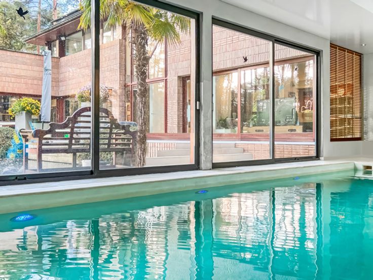 Trakteer jezelf op een uitzonderlijke levensstijl met deze uitzonderlijke woning, genesteld in het prestigieuze Domaine du Golf du Bercuit, aan het einde van een privéoprijlaan en uit het zicht. Gebouwd in 1992 met materialen van topkwaliteit, is het ontworpen om comfort, elegantie en moderniteit te combineren. Op een prachtig terrein van meer dan 50 hectare is de aangelegde tuin een oase van rust en stilte, met een groot aantal terrassen die een verscheidenheid aan buitenleefruimtes bieden. Meteen vanuit de entreehal word je gefascineerd door de open indeling en de vele ramen die een prachtig uitzicht op het groen bieden. De woonkamer heeft een gezellige open haard en een tweede zitkamer is momenteel ingericht rond een pooltafel. Verderop vormen een eetkamer en een mooie studeerkamer, evenals een grote, volledig uitgeruste keuken met bijkeuken en een bijkeuken, een goed doordacht geheel met directe toegang tot de garage voor twee auto's. Het verwarmde binnenzwembad kijkt uit over de terrassen en opent naar de tuin via de schuifdeuren aan de zijkant, zodat het in de zomer aanvoelt als een buitenzwembad. Voor perfect comfort is er een poolhouse met douche. De zeer centrale trap leidt naar de tussenverdieping en bedient twee vleugels met vijf slaapkamers, drie badkamers, drie kleedkamers en twee solariumterrassen die een serene en ontspannen sfeer bieden. De villa, die door de jaren heen zorgvuldig is onderhouden en gerenoveerd, heeft een zonnepanelensysteem en recente isolat