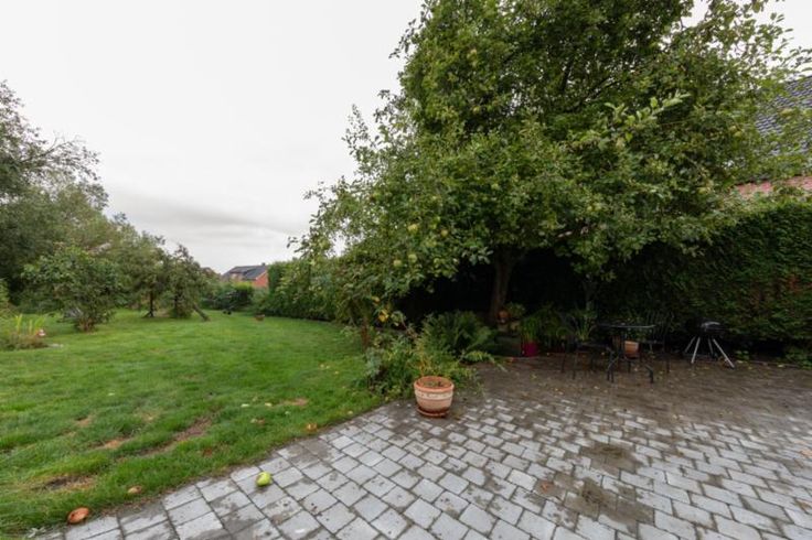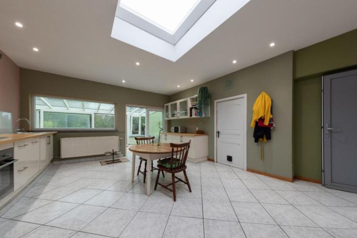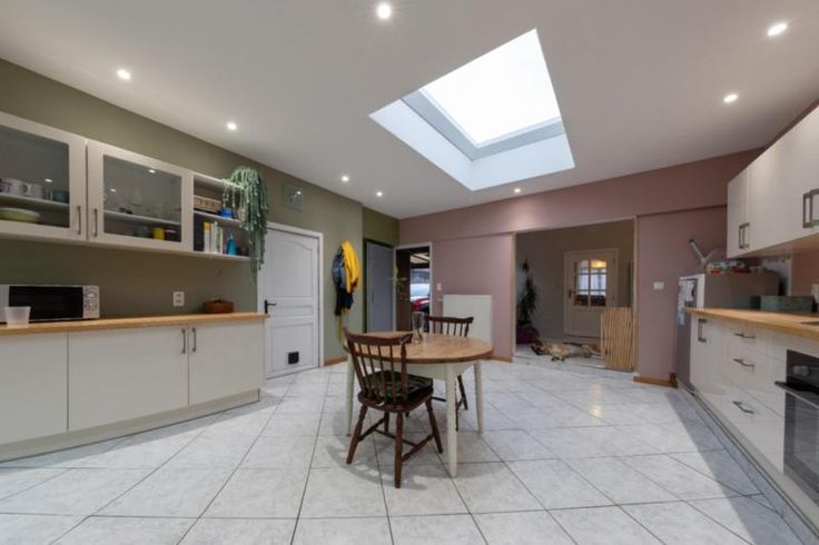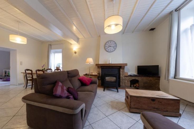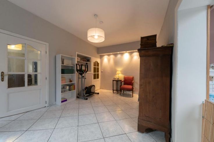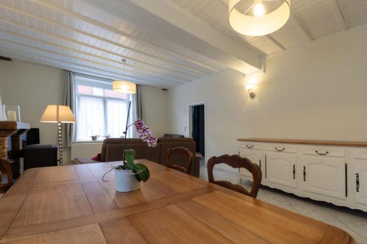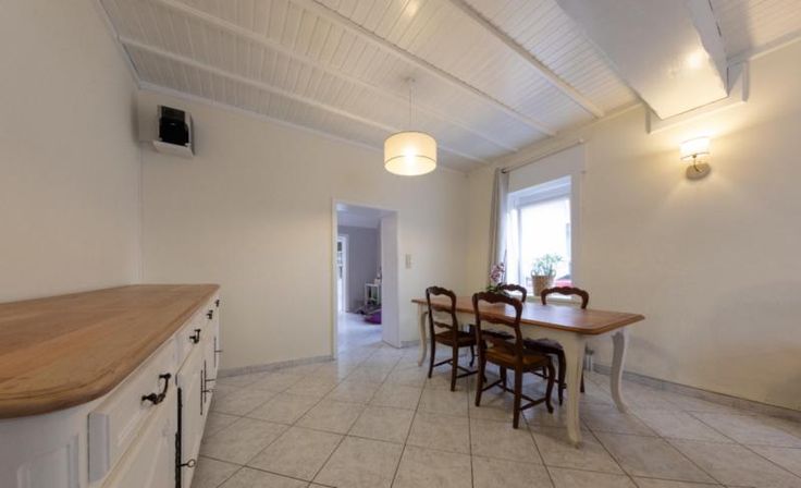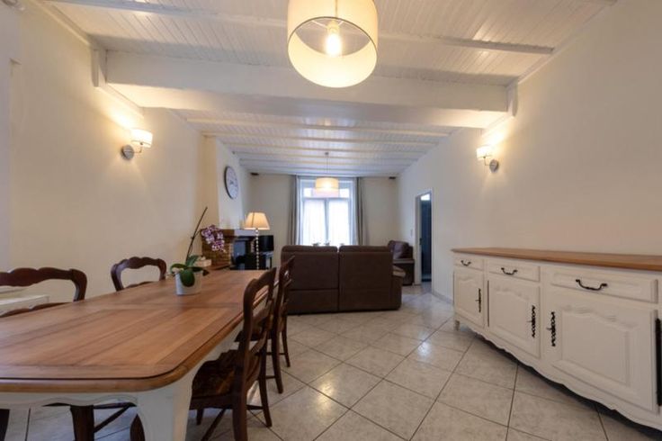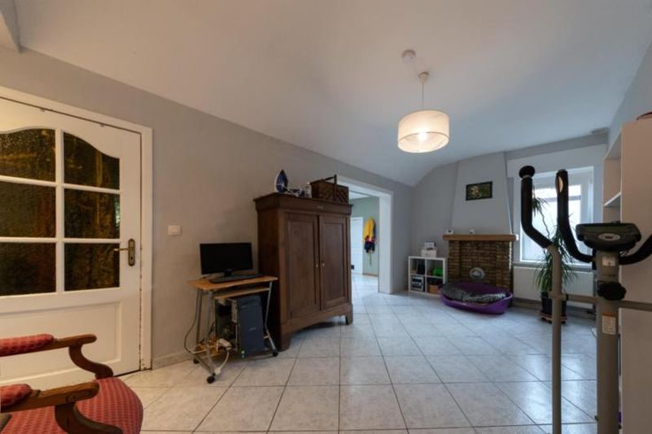 Maison d'habitation comprenant : Au rez-de-chaussée : un hall, un salon, une salle à manger, un living, une cuisine équipée sans frigo, une salle de bains équipée avec douche, baignoire et W.C, une buanderie et une véranda. A l’étage : trois chambres et un grenier. Extérieur : une terrasse, un grand jardin, deux remises et un parking fermé. RC : à définir Contenance : 6 ares 60 centiares Observations : volets (x1), citerne et double vitrage. Chauffage : central mazout.