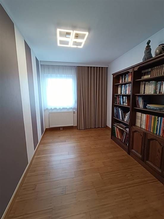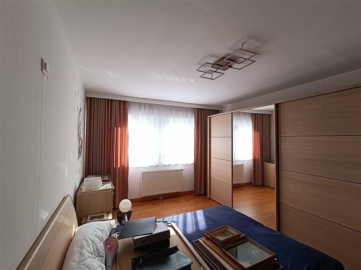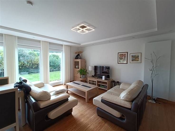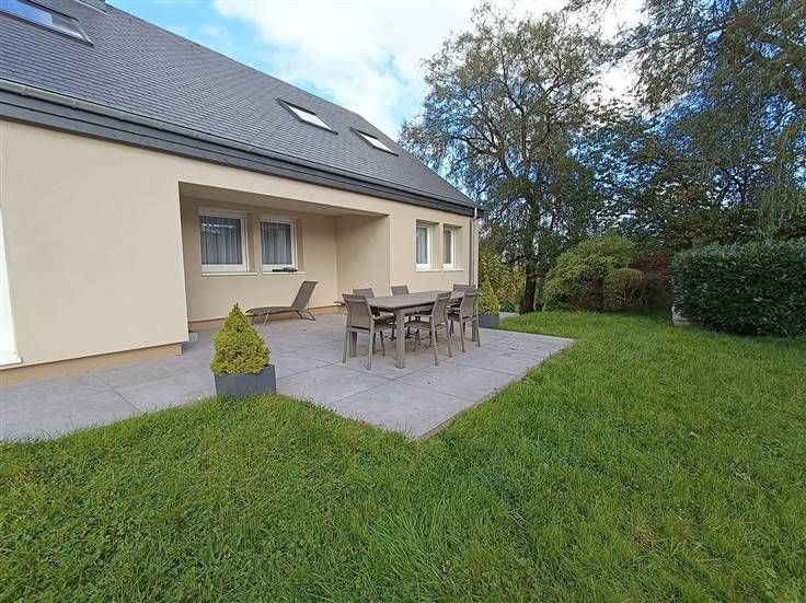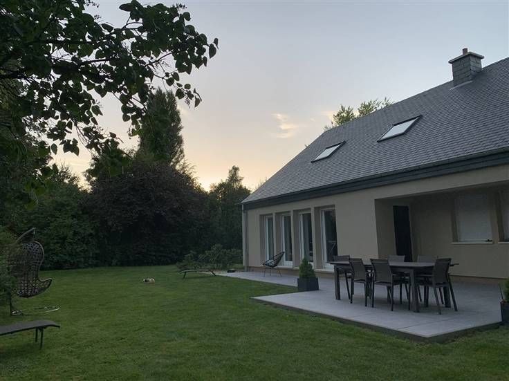 Hall d’entrée, cuisine entièrement équipée, salon, salle à manger avec accès direct vers la terrasse, 3 chambres (13,4m²/15m²/19m²), salle de douche, wc (séparé) et un bureau. Au premier étage: un grenier aménageable de +/- 100m². Au sous-sol: Garage et cave. A l'extérieur: un jardin de +/- 60 ares et sa terrasse.
