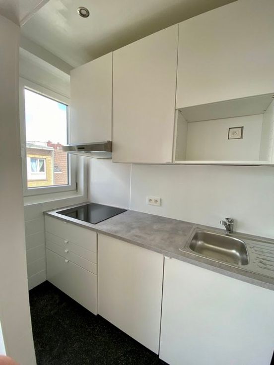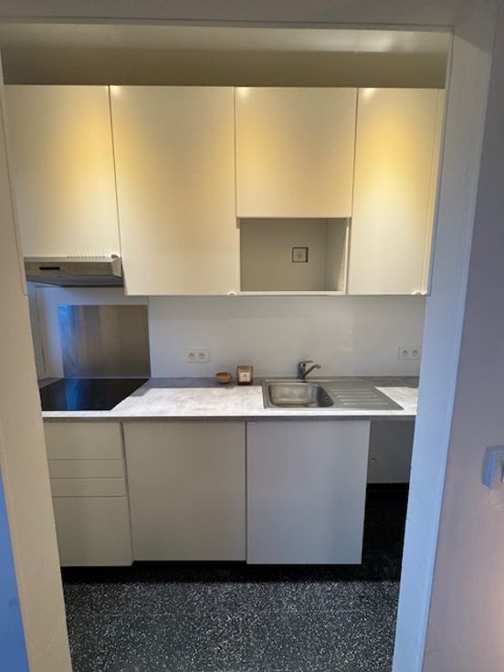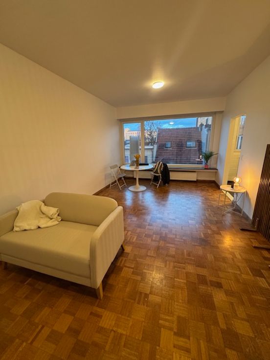 Zeer lichtrijk, ruim en modern studio-appartement van +/- 45m2 te huur op de 4e en bovenste verdieping van een klein appartementsgebouw.