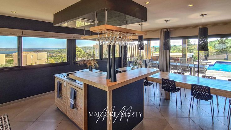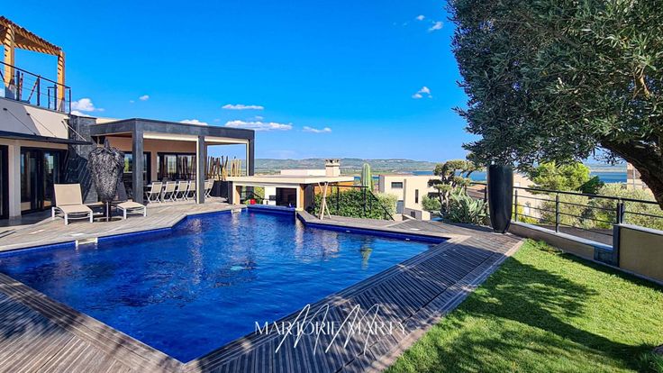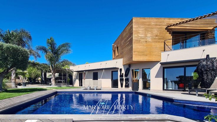 VILLA D'ARCHITECTE - ENVIRONNEMENT RÉSIDENTIEL / Propriétés Privées Prestige / Marjorie MARTY : +33 (0)6.07.16.71.20 - Bruno VUILLEMIN : +33 (0)6.38.50.27.17. A proximité immédiate de Narbonne, quartier résidentiel, en lisière de Zone Verte, position dominante avec vue à 180 ° sur le littoral audois et l'étang de Bages, orientation plein sud, Maison d'Architecte R+1 de 2011, lumineuse, construction traditionnelle avec matériaux rares comme le GRANIT du ZIMBABWE, proposant une surface habitable de 211 m2 et une surface utile de 414 m2 sur un terrain avec arrosage automatique, paysagé et arboré d'essences méditerranéennes de 1344 m2, complété par une piscine chauffée, maçonnée et habillée d'ÉMAUX de BRIARE, traitement au sel, entourée d'une plage en PADOUK et sa cuisine d'été équipée d'un barbecue XXL et d'une plancha, dédiée, permettant de s'accouder au bar tout en restant dans la fraîcheur de la piscine. La pergola d'inspiration balinaise est en eucalyptus et bois flotté. Elle se compose : REZ DE JARDIN : Hall d'entrée avec rangements , Pièce à vivre traversante de 47 m2 avec cheminée double foyer à insert FOCUS , Cuisine et espace repas de 43 m2 réalisée en chêne et aménagée par un ébéniste local, entièrement équipée d'électroménagers haut de gamme de la marque SIEMENS. Accès direct sur la terrasse couverte de 50 m2, équipée de stores brise soleil automatisés. La partie nuit offre 3 chambres de 14 m2 , chacune avec dressing aménagé, une salle d'eau double