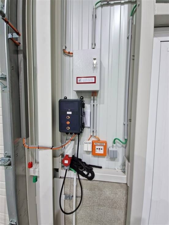 - 1 elektriciteitsmeter met 220 v en 380 v aansluitingen voorzien