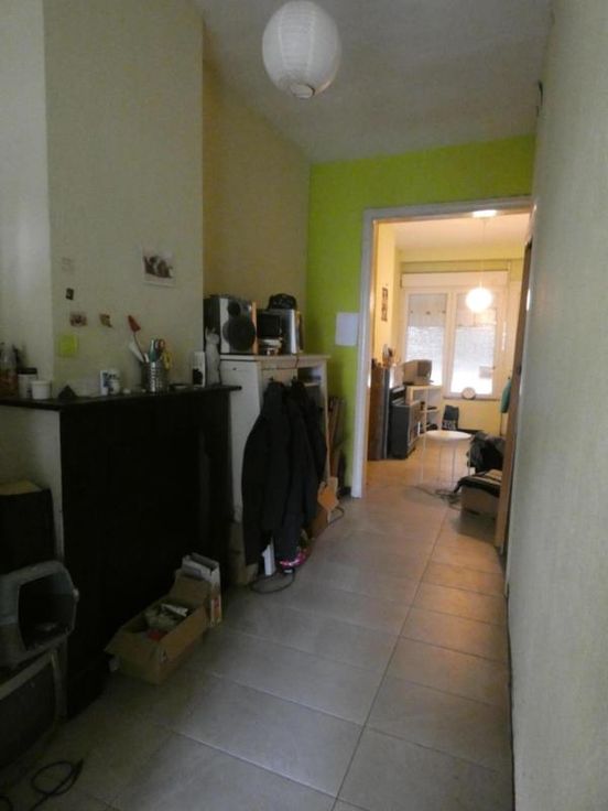 Maison 1 chambre avec jardin située au centre de Tilleur, à proximité des commerces et des moyens de transport. Au rez-de-chaussée : un salon, un couloir menant à une grande cuisine donnant sur une petite terrasse couverte. Au premier étage : une chambre, un espace dressing/bureau, et une salle de douche avec WC. Au sous-sol : deux grandes pièces dont une faisant office de buanderie, avec accès au jardin. Une cave supplémentaire. Chauffage au gaz (poêles). Contrôle électrique en cours de réalisation. Châssis en PVC double vitrage. PEB : G. Superficie chauffée selon PEB : 65 m². RC : 329 €. Le propriétaire se réserve un mois de jouissance du bien après l'acte.