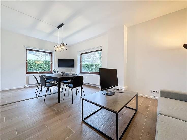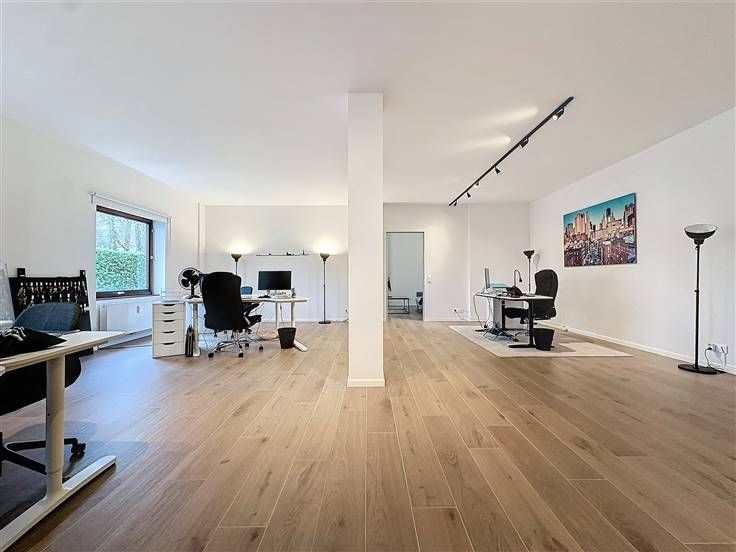 VERKOOP VAN BEDRIJFSAANDELEN. Rue Langeveld 51, op de hoek van de Avenue Sumatra, in een zeer gewilde wijk, 2 aparte kantoorverdiepingen (108 m² en 120 m²), licht en ruim, gelegen op de begane grond van een karaktervol architectonisch gebouw uit 1974, brede en rustige straat met parkeermogelijkheden, de 2 kavels worden verkocht in de vorm van bedrijfsaandelen. Dichtbij alle voorzieningen: winkels, scholen, sportcentra, ziekenhuizen, medische centra, horeca, grote wegen, treinstation, openbaar vervoer en het Ter Kamerenbos. Ideaal gelegen tussen het centrum van Brussel en Brabant. De panden zijn als volgt samengesteld: een nette entree, elegante gemeenschappelijke ruimtes, het rechterkantoor, modern en volledig gerenoveerd in 2022 en het linkerkantoor, in uitstekende staat. De kantoren zijn momenteel verhuurd voor een totaalbedrag van € 2.984/maand, waardoor directe rendabiliteit is gegarandeerd. Privékelder in de kelder. De gemeenschappelijke voorzieningen omvatten een boiler en een waterontharder. De verwarming wordt verdeeld volgens de quota van elk perceel dat in de basisakte is opgenomen, met doorgangsmeters voor water en individuele meters voor elektriciteit. De elektrische installatie is op orde en de elektrische certificaten zijn conform. De onroerendezaakbelasting bedraagt € 4.780. Bestand op aanvraag. Bezoek op afspraak, Valérie Klemm +32 476 899 699.