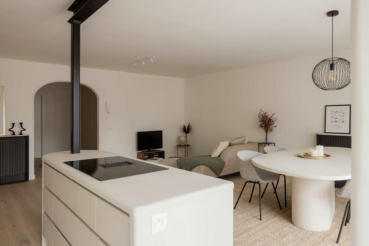 Dit volledig gerenoveerd appartement in hartje Schilde combineert comfort, licht en een high-end afwerking. Denk: parketvloeren, ingemaakte kasten, en een strakke open keuken in beton cirรฉ afgewerkt door atelier NVW, met toptoestellen (inductie, ingebouwde dampkap, vaatwasser, koelkast, vriezer).