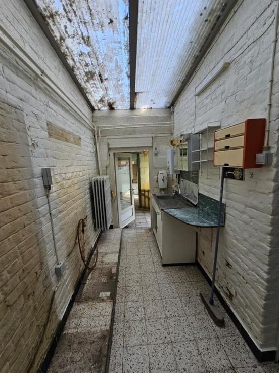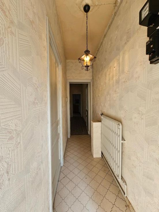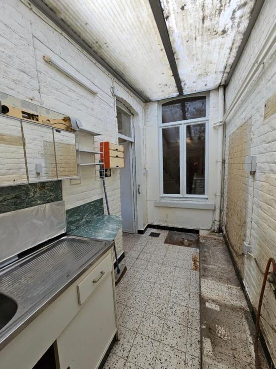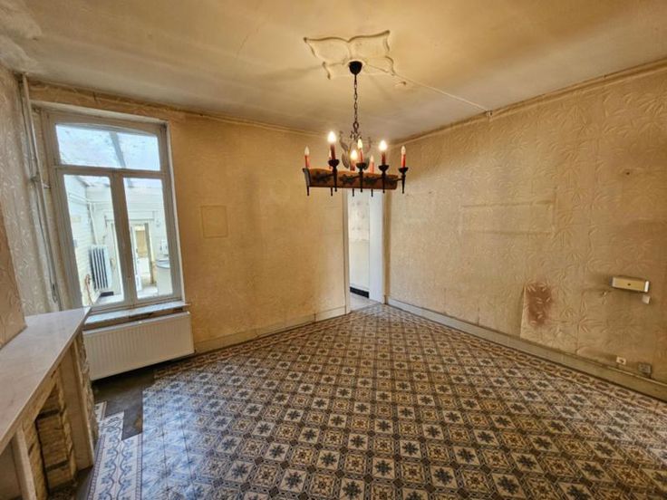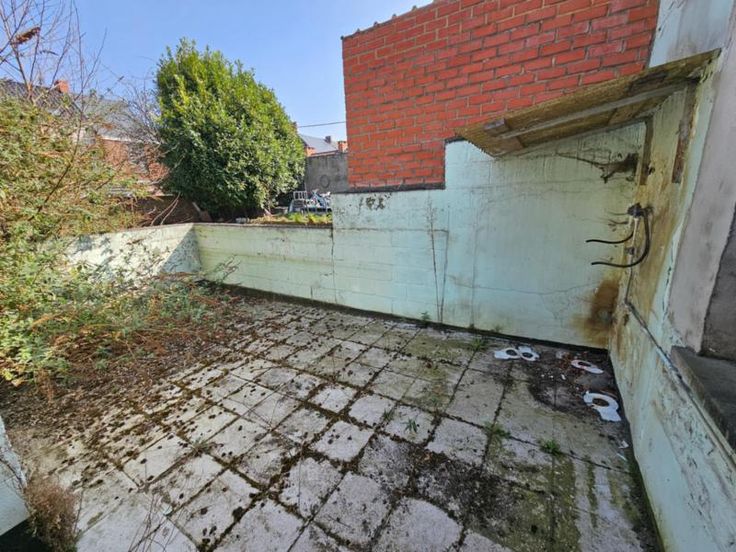 Maison avec petit extérieur, se composant comme suit: hall, salon, salle à manger, séjour, cuisine, remise; à l'étage: pallier, salle de bain, deux chambres; divers: terrasse, remise, grenier aménageable, cave. Chauffage central au gaz, volets, chauffe-eau au gaz. PEB 20241211015686, classe énergétique D. Renseignements : Notaires DE ROOSE et MOMMAERTS à Fleurus 071/81.18.05.