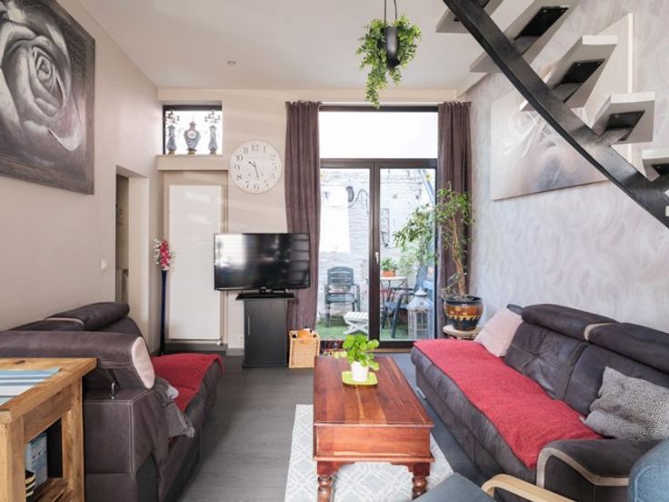 CONTACT: Laura via 0473 41 35 62 of mail naar info@vicusvastgoed.be EPC-score: B Mobiscore: 9,2/10! Deze unieke woning met mooie -dubbele- gevel bevindt zich in de Justus de Harduwijnlaan in Gent. De Justus de Harduwijnlaan ligt op wandelafstand van het historisch centrum van Gent en is vlot bereikbaar via de R40. Daarnaast is er een ruim aanbod aan openbaar vervoer; zo bevinden zich zowel een bus- als tramhalte op wandelafstand van de woning. Daarnaast ligt het station Gent Dampoort op slechts 5 minuten fietsafstand. Een ideale uitvalsbasis dus. In de straat zijn er voldoende parkeergelegenheden voor uw wagen. De indeling van de woning is als volgt: U betreedt de woning in de inkomhal die u toegang geeft tot de volledig geïnstalleerde keuken, achter de keuken ligt de ruime leefruimte. Hier is tevens een voordeur voorzien, u kan hier dus ook de inkom van maken. De leefruimte geeft achteraan uit op een deels overdekt stadskoertje. Via de leefruimte heeft u toegang tot het aparte gastentoilet en de eerste badkamer die is uitgerust met een ligbad, grote inloopdouche, wasmeubel, ingemaakte kasten, muziekbox en ventilatiesysteem. Via de trap in de leefruimte begeeft u zich naar de eerste verdieping waar zich 3 ruime slaapkamers bevinden en een tweede badkamer. Deze badkamer is vernieuwd in 2022 en werd voorzien van een luxe douchecabine, wasmeubel, 2e toilet en nieuwe CV-ketel. Op de tweede verdieping bevindt zich nog een grote studio die opnieuw werd uitgerust met een vo