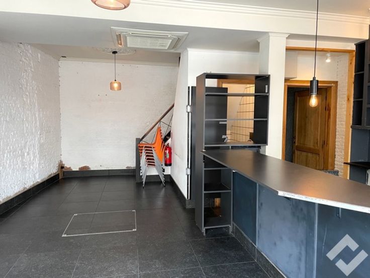 Het pand bestaat uit drie verdiepingen met op de gelijkvloerse verdieping een mooie handelsruimte die momenteel ingericht is als bar, een toilet en kleine bergruimte. Er is airco aanwezig en de voorgevel bestaat uit vitrine ramen waardoor je optimaal producten of diensten kan tonen. De eerste verdieping bestaat uit een mooie zitruimte, keuken en toilet. Via de zitruimte komen we ook op de tweede verdieping waar we twee kamers vinden, ideaal als extra bergruimte of bureau.