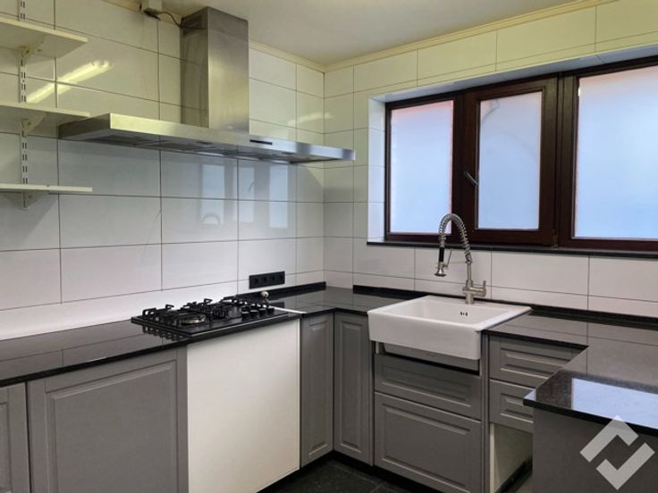 1e verdieping: overloop, keuken, toilet, zitruimte.