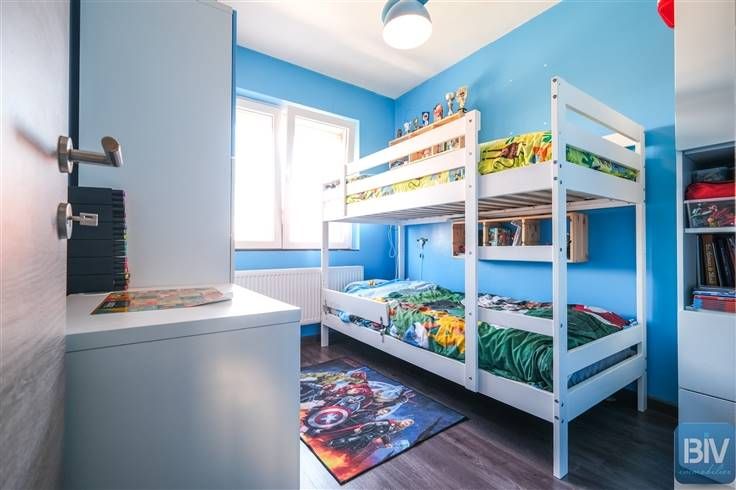 Au 1er étage, à partir du palier, un séjour (20m2), une cuisine équipée avec espace repas (10m2), deux chambres (13m2)(7m2), une salle de douches (4,5m2) avec wc et une grande terrasse (28m2) avec accès au jardin. PEB B - panneaux photovoltaïques. Pour plus d'infos ou une visite, contactez l'agence immobilière B.I.V. - 04 222.39.39