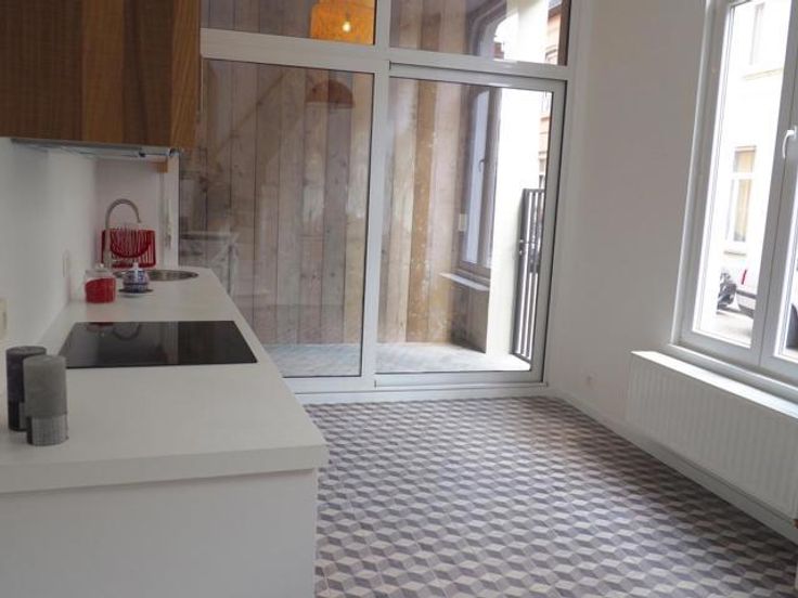 BEL OF SMS Isabelle op 0494 89 71 09 of via isabelle@vicusvastgoed.be Woning met een overdekt terras, die zowel via straat als via de keuken bereikt kan worden. Ideaal als fietsberging of als fris terras bij warme temperaturen. Lichtrijke en volledig uitgeruste keuken met vaatwasmachine, oven, kookplaat en dampkap. Vanuit de keuken kan er ook naar de kelder gegaan worden. Op het eerste verdiep hebben we een multifunctionele open ruimte en de badkamer. Daarboven bevindt zich nog een slaapkamer.