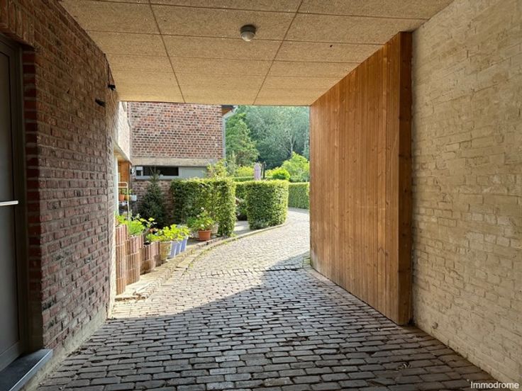 Prima gelegen woning met mooi terras dat uitgeeft op aangelegde binnenplaats. Indeling: Inkomhal met apart toilet, een bureel of slaapkamer, wasplaats met douche & wastafel en aansluitingen voor wasmachine, leefruimte met open keuken - schuifraam naar terras. Op de eerste verdieping zijn er 2 slaapkamer en badkamer. Voorzien van veluxen met elektrische rolluiken. CV aardgas, elektriciteit conform, videofoon, nieuwe ramen, dak e.d. Er is een aparte buitenberging en er zijn 2 staanplaatsen inbegrepen. Algemene onkosten in gemeenschap bedragen 50 euro/maand (incl. brandverzekering) Zeer mooi woonerf gelegen in het centrum en dus alles aanwezig (school, winkel, bank , e.d.) in straal van 100 m !!