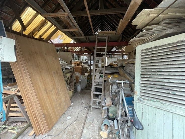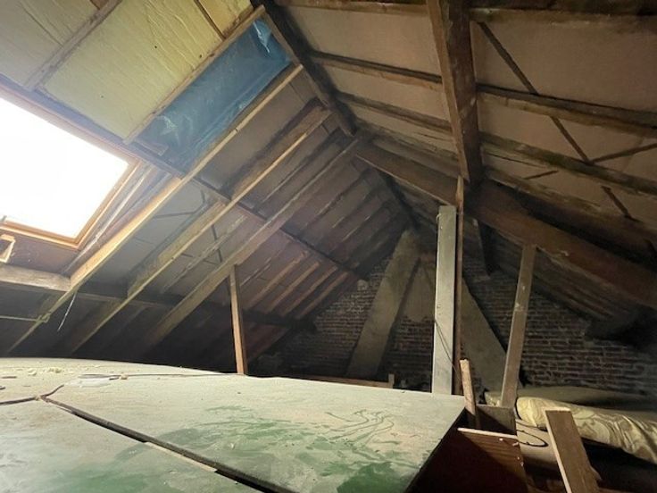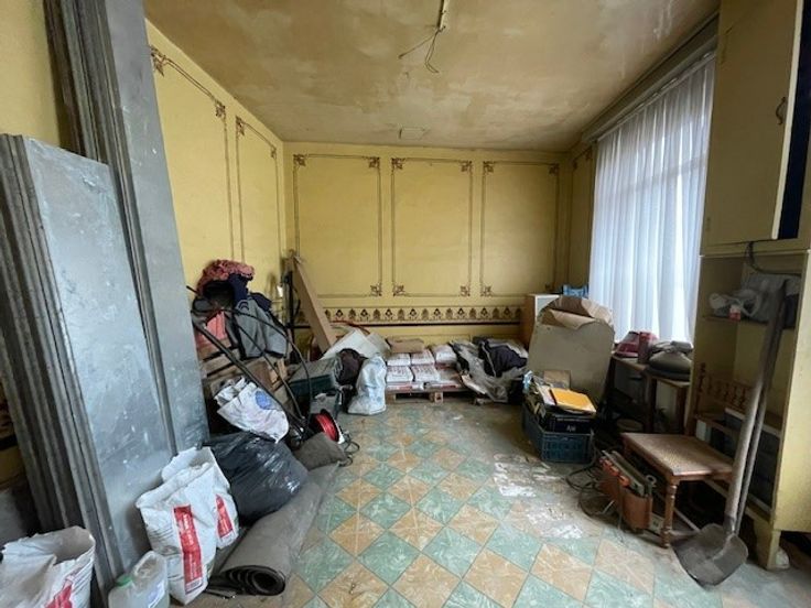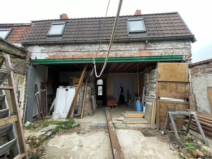 Een totaal renovatieproject op een grondstuk van 323 m2. De eigendom omvat een een casco woning met een nuttige oppervlakte volgens epc van 151 m2. Boven is onder het reeds vernieuwde dak (en goten) en volwaardige bovenverdieping met ruimte voor 3 slaapkamers en eventueel badkamer. Achteraan is een (eveneens te renoveren) magazijntje/loods met parking en uitweg op de Poekelaan.