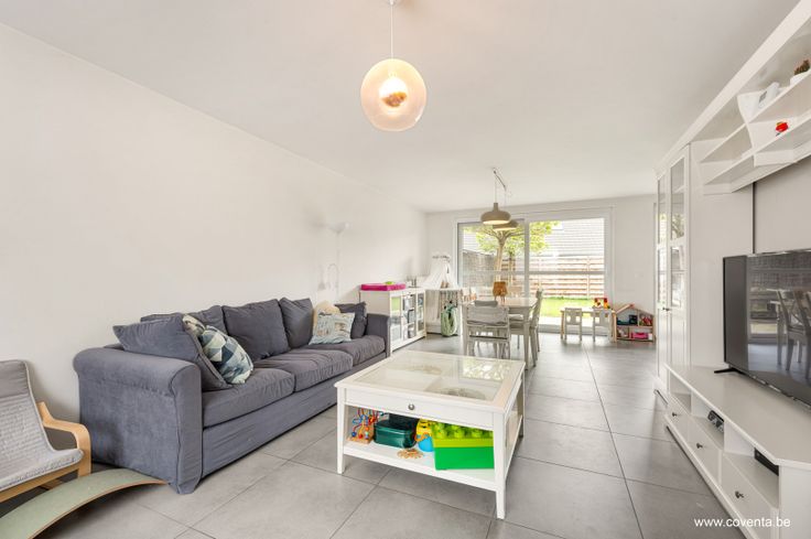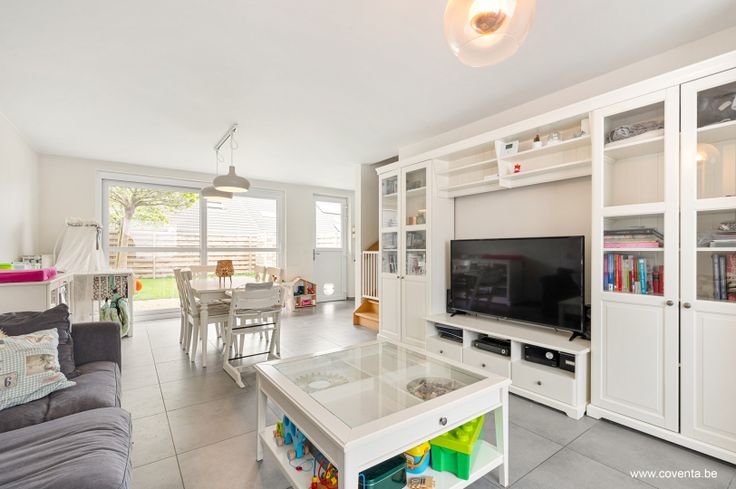 Deze woning gelegen in een kindvriendelijke buurt bestaande uit: inkomhal met toilet, lichtrijke woonkamer - salon met aansluitende keuken, berging/wasplaats en garage.