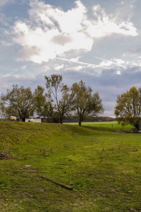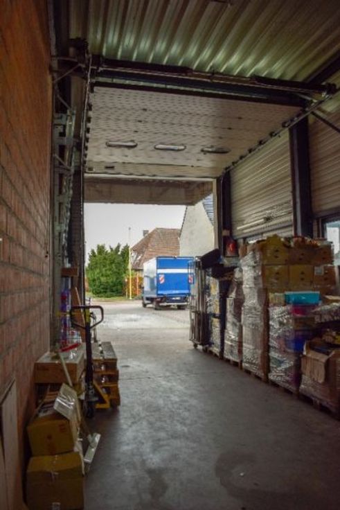 Scheidingswand tussen doorgang voor vrachtwagens en opslag.