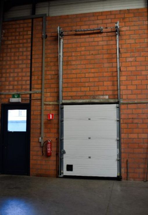 sectionale poort van 4 m hoogte, elektrisch bedienbaar.