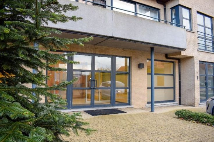 Toonzaal, kantoren en magazijn als deel van villabouw in betonstructuur met drie verdiepingen in Grimbergen. Het gelijkvloers en deel van de eerste verdieping horen bij het bedrijfsmatig gedeelte terwijl de appartementen in mede-eigendom zijn.