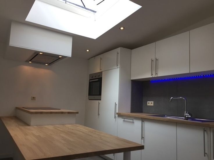 RDC: cuisine full équipée ,living, buanderie avec chauffe eau, pièce pour poubelles, chauffage au gaz.