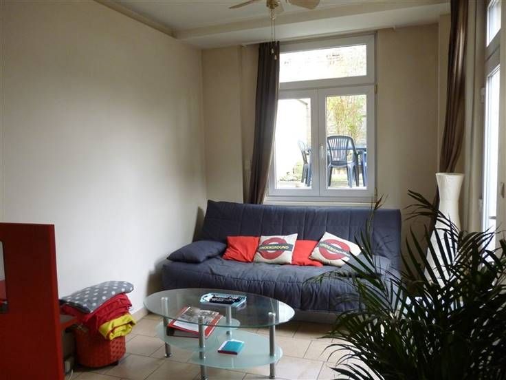 Saint-Servais, Chaussée de Waterloo, 298, agréable studio au rez et au calme avec terrasse et jardin. Il se compose d'un petit hall d'entrée avec placards intégrés, cuisine équipée (four, taques vitro-céramiques, frigo, congélateur 3 tiroirs et double éviers), séjour en enfilade donnant sur la terrasse. SDD carrelée et cave avec emplacement machine à laver. Libre le 01/09/07. Loyer 335 ¬ + 60 ¬ pour l'eau, le chauffage et les communs. Compteur éléctrique individuel. Www.actibel.be