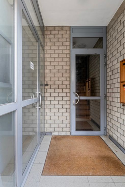 Deze opbrengsteigendom uit 1991 is gelegen in het commerciële centrum van Hoegaarden. Bestaande uit een gelijkvloerse kantoorruimte (vroeger bankkantoor), een duplex appartement met terras en tuin en een studio telt het complex een totale oppervlakte van 218m².