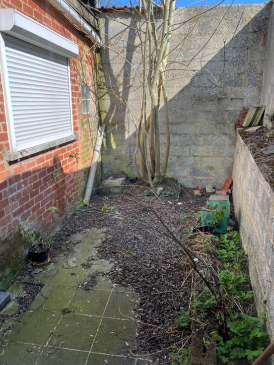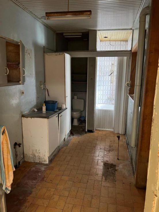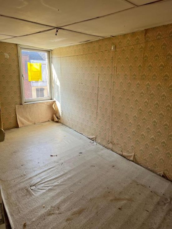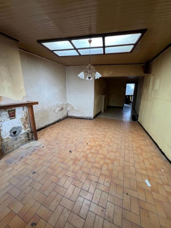 Maison d'habitation à rénover entièrement reprise au cadastre sous maison de commerce, comprenant au REZ : 1 pièce à l'avant, 1 living, 1 W.C., 1 cuisine, 1 douche. ET : 2 petites chambres à l'avant, 1 grande chambre à l'arrière, 1 grenier (le plancher est à refaire). EXT : petite cour. DIVERS : 1 cave, toit en bon état, volets, châssis double vitrage à l'avant, raccordement au gaz, à l'eau et à l'égout.