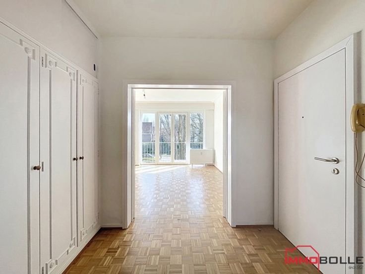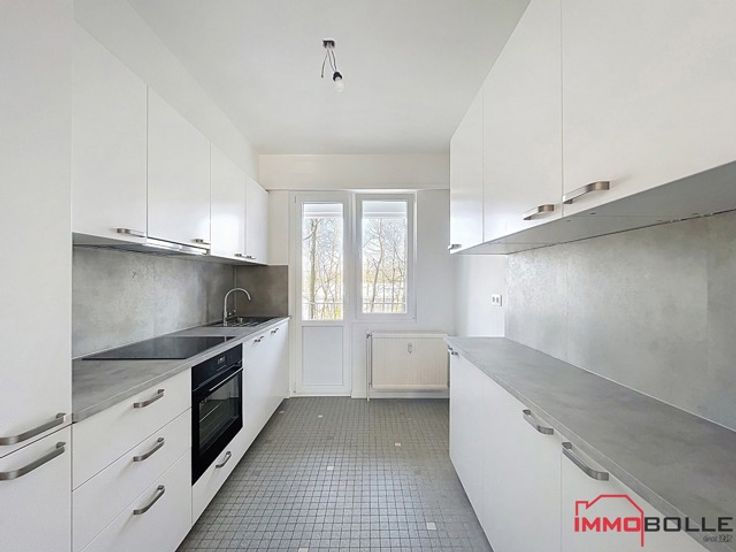Avenue des Jardins, entre le parc Josaphat et le quartier Diamant, à proximité de l'arrêt Pentathlon (tram 62) et de toutes les facilités, bel appartement rafraîchi de +/- 95m² (selon CPEB) situé au 1er étage d'un immeuble de 11 étages (avec ascenseur). L'appartement se compose: d'un grand hall d'entrée avec vestiaire, d'un séjour et d'une salle à manger de 32m² avec accès à la terrasse avant, d'une cuisine neuve et super-équipée avec accès à la terrasse arrière, d'un hall de nuit avec placard, de 2 chambres (11m² et 14m²), d'une salle de bain et d'un WC séparé. Cave. Chaudière collective au gaz. Châssis double vitrage. Bail souhaité de 3 ans. CPEB: D-. Libre immédiatement.