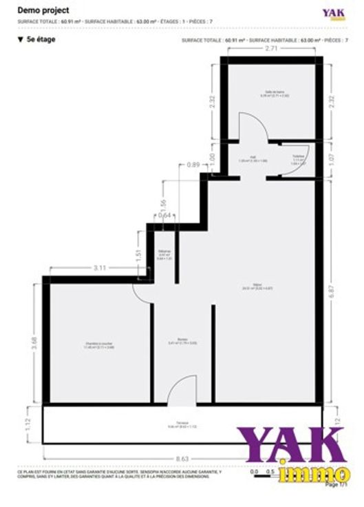 Te koop Appartement met 1 slaapkamer op de 5e verdieping met terrass