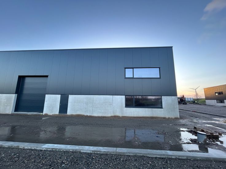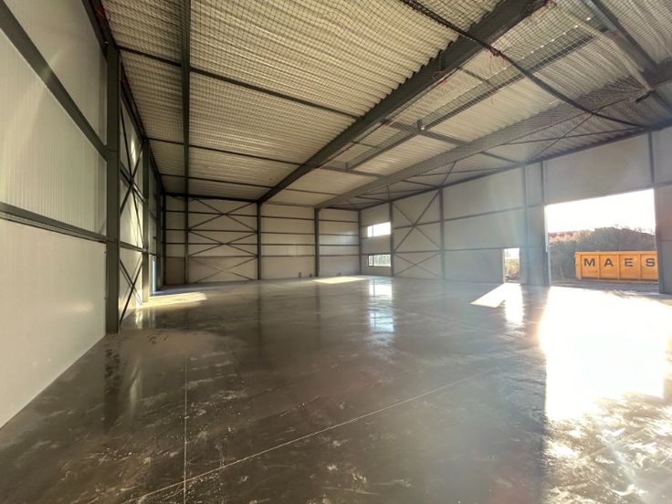 De units worden casco opgeleverd. Staalstructuur met plint van 2.4m hoog en geïsoleerde sandwichpanelen, polierbetonvloer, vloer met puntbelasting van 3 ton/m² tussenwanden zijn in beton en 14cm dik, dak is in steeldeck, lichtstraten van 3x12meter, sectionaalpoort, alu schrijnwerk.