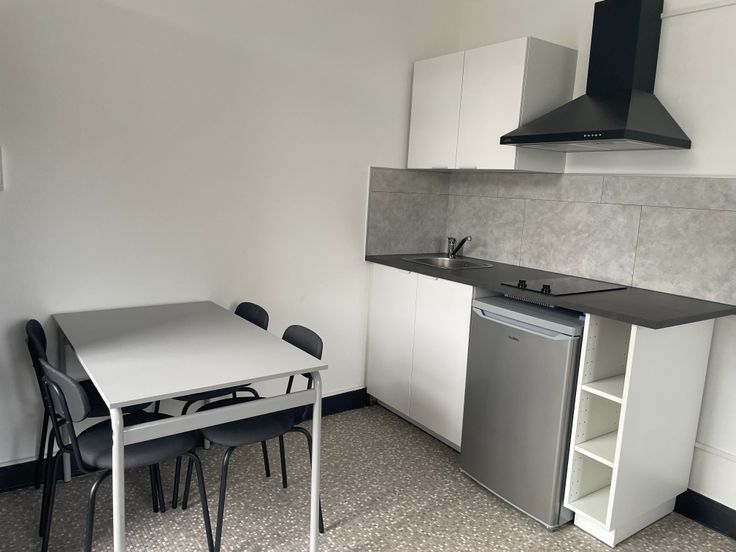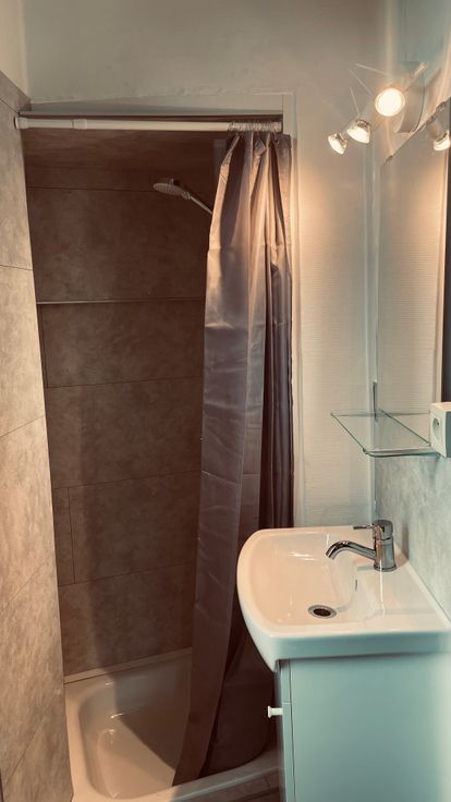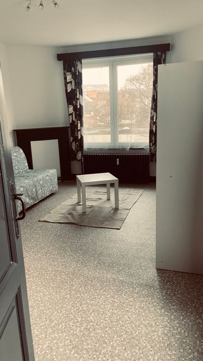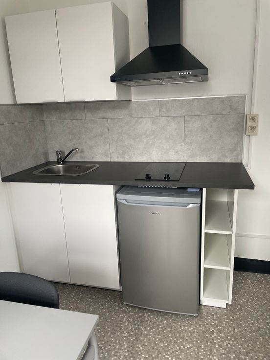 libre le 01/04/25, dans maison de maitre, studio meublé, convient pour 1 personne solvable. composé d'une pièce principale avec coin cuisine. S de douche. Mobilier moderne, donne sur l'arrière de la maison avec vue sur jardin, endroit calme proche lignes de bus, tram et gare.