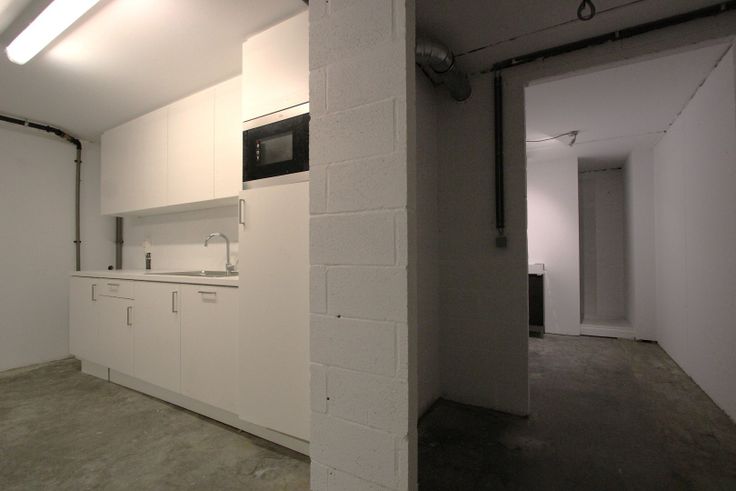 Gelijkvloers van 87m², apart toilet, kelder van 37m² met kitchenette te bereiken vanuit het gelijkvloers zelf.