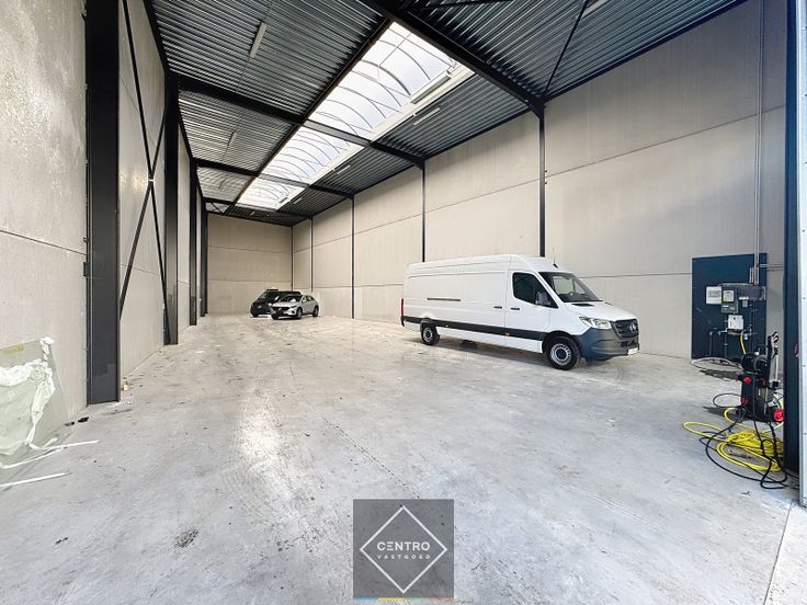 Benaderende AFMETINGEN:  Voorgevelbreedte: ± 12,72m Achtergevelbreedte: ± 7,6m Diepte: ± 32m AFWERKING: - Stalen constructie, voorzien van brandwerend coating met volledige overspanning (geen palen in het magazijn).  - Gevelwanden in geïsoleerde betonpanelen met glazen inkomdeur en glaspartijen (glv. en eerste V.) voor kantoor. - Gepolierde en gewapende betonvloer (15cm), in vakken gezaagd. - Geïsoleerd plat dak met EPDM, bestaande uit steeldeck met  centrale lichtstraat (dubbelwandige polycarbonaat platen), voorzien van rookluiken. - 1 geïsoleerde, elektrische sectionaalpoort (h: 4,5m; b: 4m).  - 1 nooddeur in de achtergevel - Vrije hoogte: 8m. Mogelijkheid om een tussenverdieping te plaatsen! MOOI RENDEMENT: Momenteel verhuurd aan € 1.385,-/maand excl. btw en onroerende voorheffing. Goeie huurder! NUTSVOORZIENINGEN: Alle voorzieningen zijn getroffen voor aansluiting van stadswater, elektriciteit, en data.  Iedere unit heeft een afzonderlijke tellers (stadswater en elektriciteit) in het magazijn.  Er is een gescheiden rioleringsstelsel voorzien voor afvoer regenwater en afvalwater. Voor deze unit zijn er afvoeren voorzien voor toilet en uitgietbak. De regenput is voorzien van een aanzuigleiding socarex tot in het magazijn.  OMGEVINGSWERKEN en TOEGANGSWEGEN: Rond de gebouwen zal de buitenaanleg en de groenvoorziening uitgevoerd worden. De opritten zullen in beton/asfalt worden aangelegd, de parkings in grasdallen. Alles klaar tegen de notariële ak... Renovatieplicht: nee