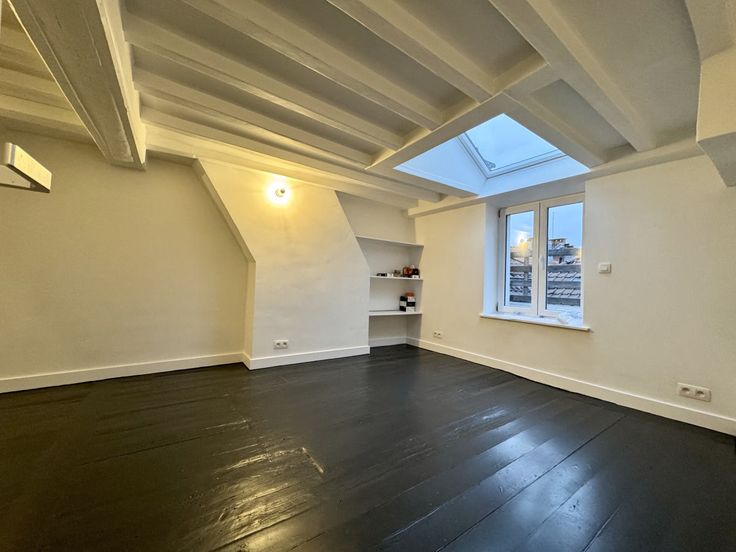 Op het zuiden gelegen, volledig gerenoveerd studio-appartement van 50 m² op de 4e en bovenste verdieping, ideaal als pied à terre, met uitzicht op de Place du Grand Sablon, bestaande uit een hal, een ingerichte keuken/eetkamer, een woonkamer, een terras, een badkamer, een bijkeuken en een slaapgedeelte op de mezzanine. Kosten van €43 voor koud water, nutsvoorzieningen en onderhoud verwarming. Zeer gewilde locatie. PEB C+. Beschikbaar per direct. Meer huizen ? www.agencewashington.be