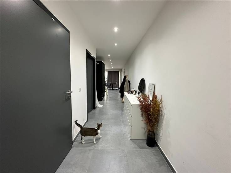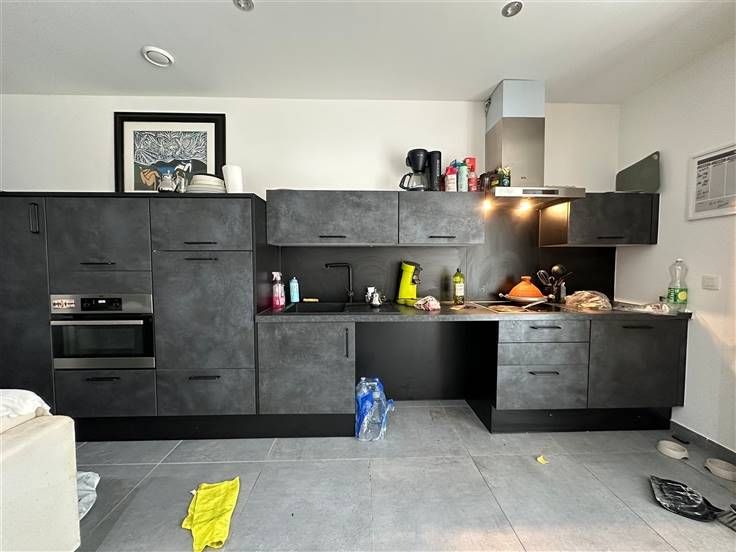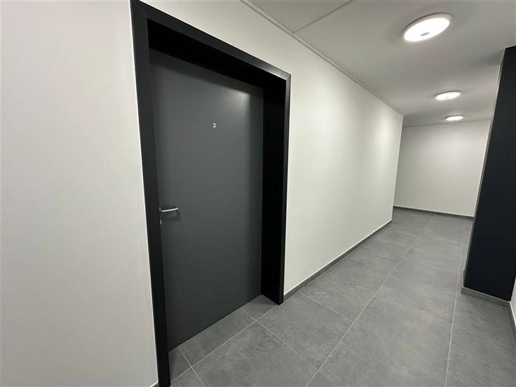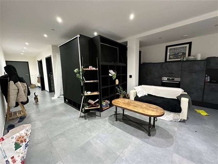 het appartement bestaat uit: een hal die leidt naar een bijkeuken (met aansluiting voor wasmachine en droger), een doucheruimte (inloopdouche, 1 wc en 1 wastafel met spiegel), een slaapgedeelte, een open keuken (gootsteen, afzuigkap, oven en magnetron, kookplaat, vaatwasser, kast en geïntegreerde stopcontacten) die leidt naar een woonkamer met toegang tot het terras van 22,3 m², de parkeerplaats en de gemeenschappelijke tuin. Op de -1 verdieping: een kelder.