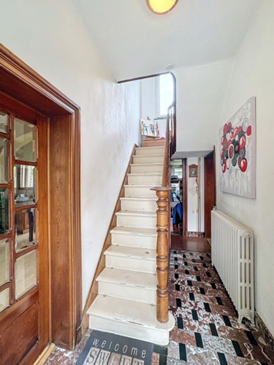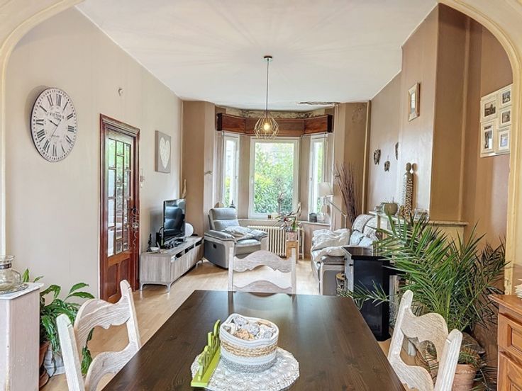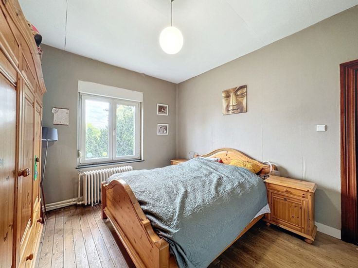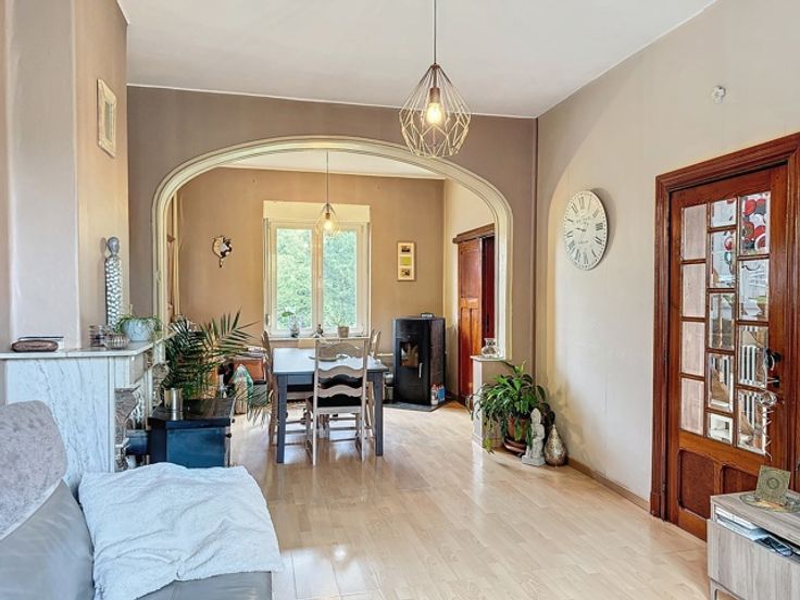 OPTION - Cette maison 4 façades bénéficie d'une situation exceptionnelle, idéalement placée dans un quartier calme et recherché, à proximité de nombreuses commodités. Elle se compose d’un hall d'entrée, d'un confortable séjour-salle à manger et d'une cuisine semi-équipée. À l'étage, vous trouverez une salle de douche, trois chambres et un wc. Au sous-sol: caves. À l'extérieur, un jardin avec terrasses et un un garage. Les châssis en PVC double vitrage avec volets en partie. Chauffage via deux poêles à pellets et un chauffage central au mazout. PEB: G. Le revenu cadastral est de 676 euros (possibilité de taux réduit). Les visites se font sur rendez-vous au 04 254 18 77.